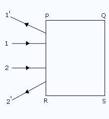 In the figure, 1 and 2 are the incident rays while 1l and 2l are the rays emerging from the region PQRS. Complete the diagram showing the optical object inside the region PQRS, producing this effect?