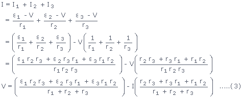 The equivalent combination by a single cell A and D of emf VAD = εeq – Ireq ------- (4)