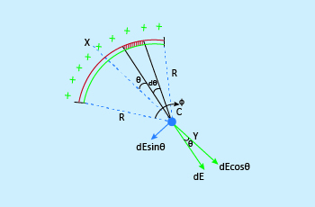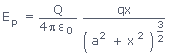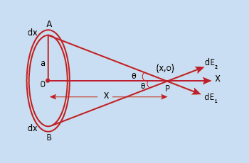 The intensity of electric field at a distance x meters from the centre along the axis: