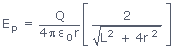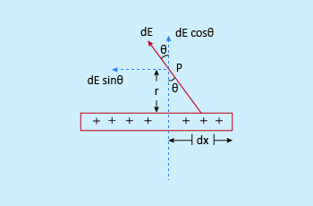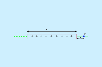 At an equatorial point: To find the electric field due to a rod at a point P situated at a distance 'r' from its centre on its equatorial line