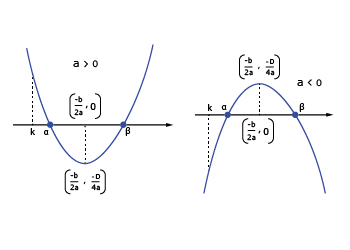 | Roots are real and not equal ⇔ Curve intersects x-axis | ||