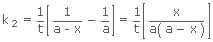 It is the required integrated expression for the rate constant of a second‐order reaction in which two molecules of the same reactant are involved in the reaction.