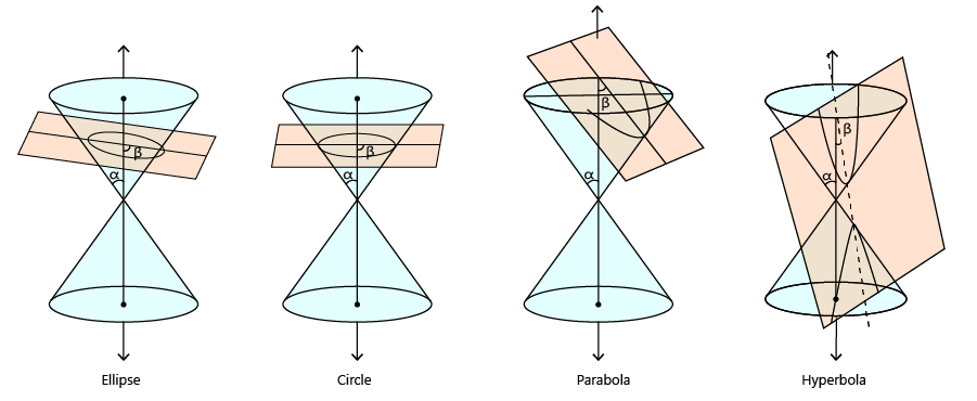 i.e, generated conics are ellipse, circle, parabola and hyperbola.