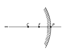 At infinity, i.e., u = ∞ | At focus, i.e., v = f | m < 1, diminished | virtual | erect |